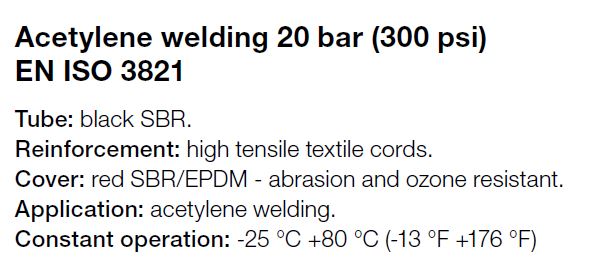 Alfagomma, Acethyleen lasslang, Textielinlage met hoge treksterkte - 20 bar, 6 x 13 mm - 1/4", afname per volle rol, 100 mtr., type 076AH