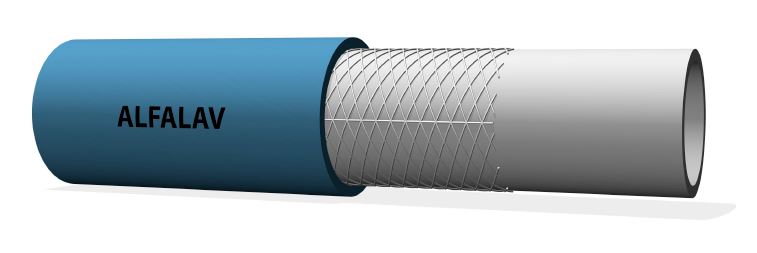 Alfaflex Alfalav persslang De Alfaflex Alfalav is een hoogwaardige persslang, speciaal ontwikkeld voor toepassingen met stoom en heet water in de voedingsmiddelenindustrie. Toepassing: De gladde, hygiënische binnenwand maakt de slang ideaal voor omgevingen waar reinigbaarheid en productveiligheid essentieel zijn. Dankzij de hittebestendige en robuuste constructie levert deze slang betrouwbare prestaties, ook onder zware omstandigheden. De slang voldoet aan de geldende internationale kwaliteits- en veiligheidsnormen, waaronder EN 12115, en garandeert zekerheid, hygiëne en duurzaamheid.
