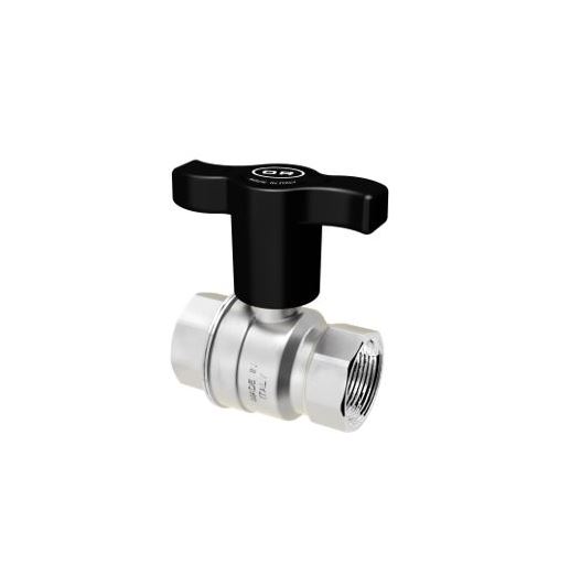 Aurea messing verchroomde kogelkraan 3/4", 2 x bi.dr., industrie uitvoering, type 1125, volle doorlaat, PN 35, verlengde PP vlinder handgreep, met ACS drinkwater certificaat