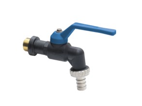 VIR messing/PP vorstbestendige tapkogelkraan 3/4" bu.dr. x slangwartel, 1" + slangtule 3/4" - 19 mm, type 218, volle doorlaat, PN 16, PA handgreep