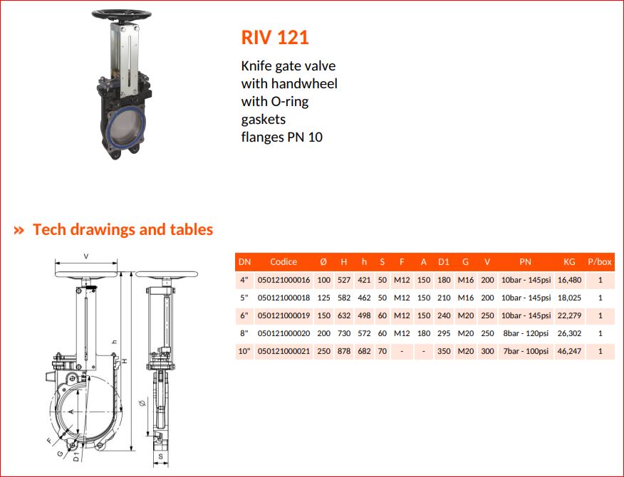 RIV Gladio 121 gietstalen / RVS 304 plaat afsluiter, handwiel / spindel, met vierkantflenzen 4", incl. 2 O-ringen