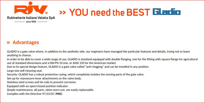 RIV levert een breed assortiment originele kwaliteit schuifafsluiters, hevel bediening armaturen, hydraulische- pneumatische enkel en dubbelwerkende cilinders, tank beveiligingen, tankvulling indicatoren, flexibele koppelingen en trechters.