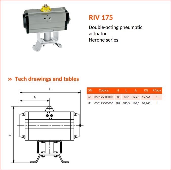 RIV Karbon 175 dubbelwerkende pneumatische bediening actuator / motor voor afsluiter type: Nerone 201 en 202, 6"