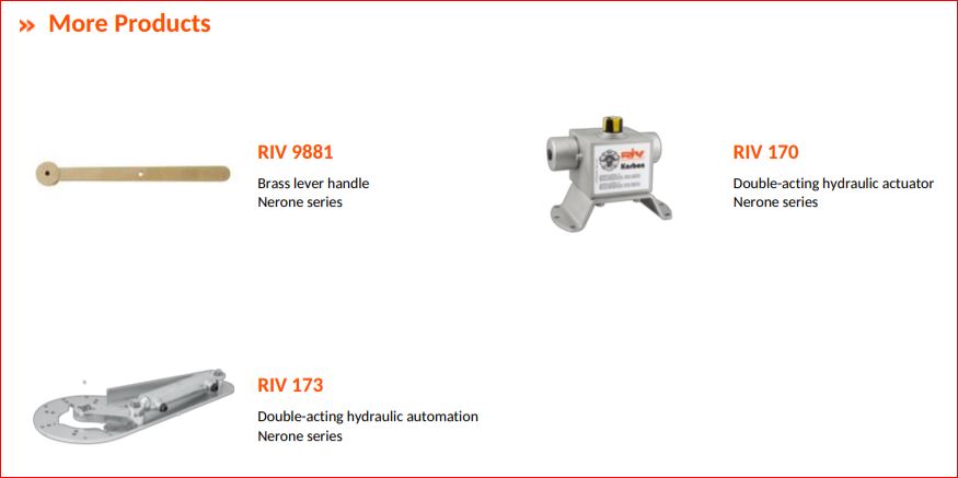 RIV levert een breed assortiment originele kwaliteit schuifafsluiters, hevel bediening armaturen, hydraulische- pneumatische enkel en dubbelwerkende cilinders, tank beveiligingen, tankvulling indicatoren, flexibele koppelingen en trechters.