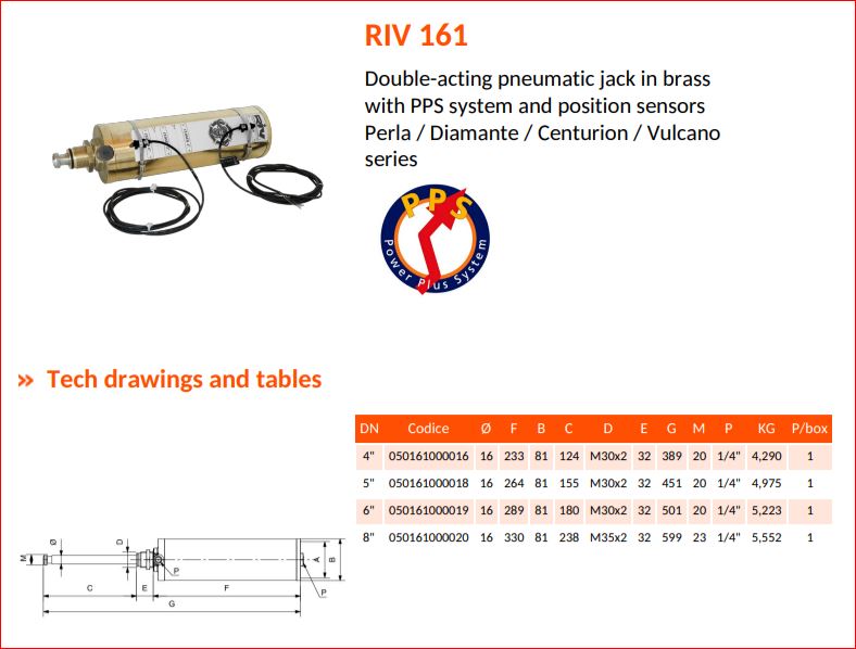 RIV Smeraldo 161, PPS, dubbelwerkende pneumatische cilinder + positionering sensoren voor afsluiter type: Perla- Diamante- Centurion- Vulcano, 8"