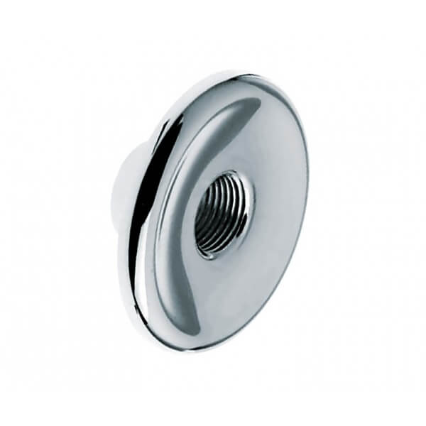 Messing verchroomde ronde gevelplaat met vast aansluitstuk t.b.v. sanitaire tapkraan, 1/2" bu.dr.