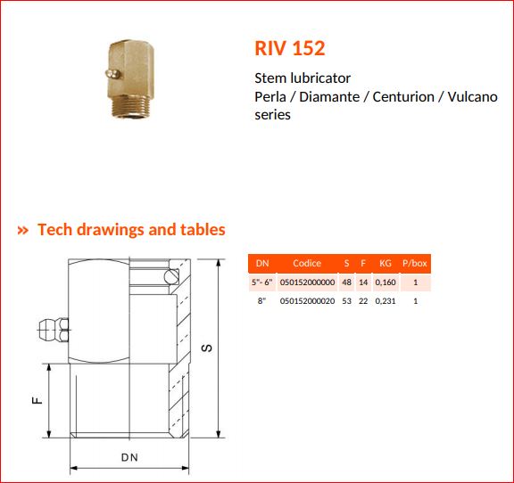 RIV Smeraldo 152 geleidebus met smeernippel voor afsluiter type: Perla- Diamante- Centurion- Vulcano, 4"- 5"- 6"