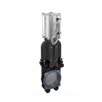 RIV Gladio 122 gietstalen / RVS 304 dubbelwerkend pneumatisch bediende plaatafsluiter, + positionering sensoren, met vierkantflenzen 12", incl. 2 O-ringen, ATEX, IMQ gecertificeerd