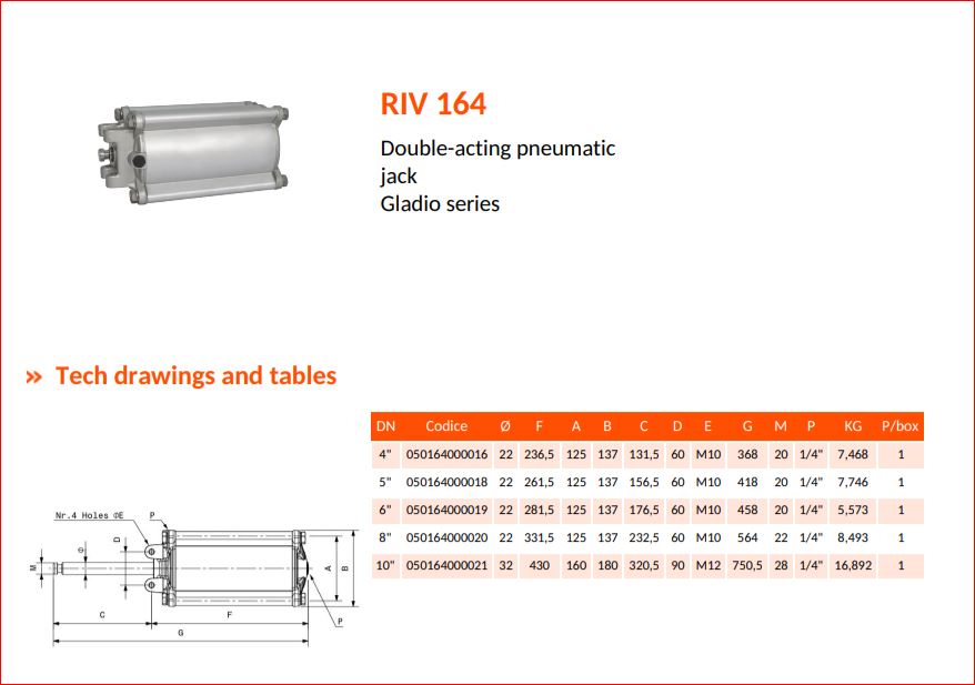 RIV Titanium 164, dubbelwerkende pneumatische cilinder voor afsluiter type: Gladio 12"