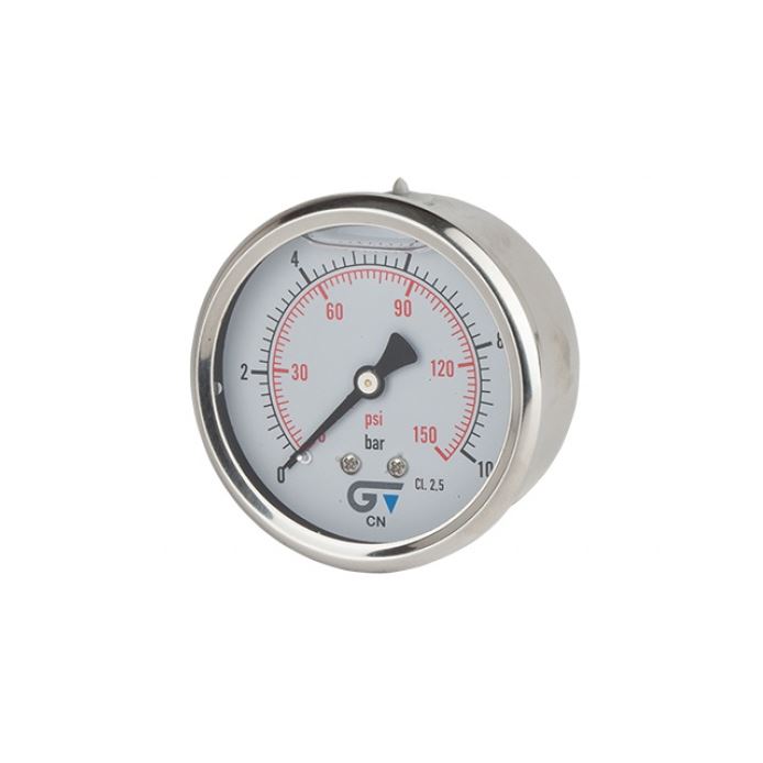 Manometer, drukmeter, nat / glycerine gevuld, achteraansluiting, 1/4" messing bu.dr. BSP