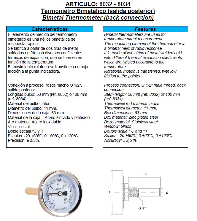 Genebre bimetaal thermometers met staal verzinkte behuizing[/b]