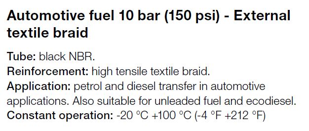 Alfagomma, Autobrandstofslang 10 bar met textiel buitenmantel - Textielinlagen, 10 x 15 mm - 3/8", afname per mtr., type 689AA