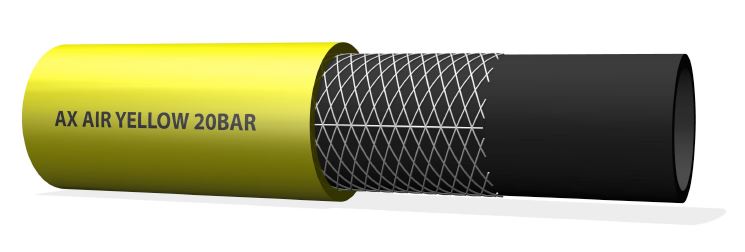 Alfaflex AX Air Yellow 20 bar persluchtslang De Alfaflex AX Air Yellow 20 bar is een krachtige en flexibele lucht- en gasslang, ontworpen voor intensief gebruik in industriële omgevingen en werkplaatsen. Toepassing: Deze persluchtslang is geschikt voor het transport van perslucht en diverse gassen en biedt dankzij de robuuste constructie een hoge bedrijfszekerheid en lange levensduur. De slang voldoet aan de geldende industriële normen, waaronder EN ISO 2398, en staat garant voor veiligheid, betrouwbaarheid en consistente prestaties.