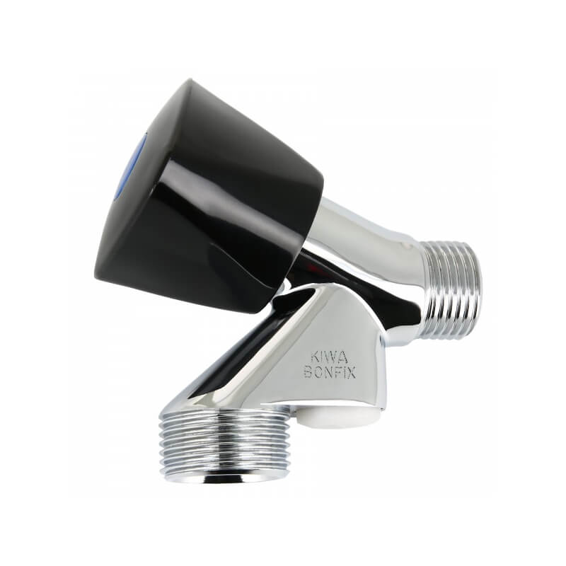 Bonfix beluchter / wasmachinekraan, 1/2" x 3/4" bu.dr., gepolijst verchroomd, zwarte draaihandgreep, KIWA keur