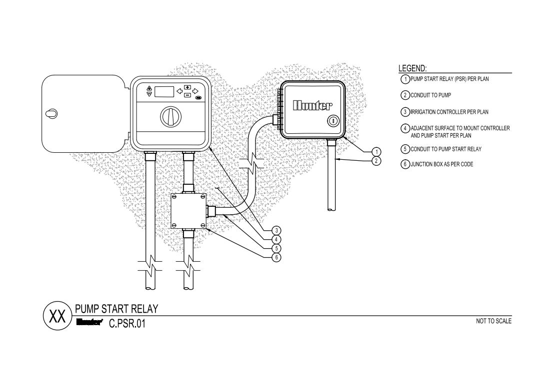 Hunter pomp / electromotor direct start relais, toepasbaar voor 1-fase 230 VAC motoren, max. afgegeven vermogen 2,5 kW 230VAC 50Hz, toepasbaar voor Hunter beregening controllers / automaten serie Pro-C en ICC. Het pompstart relais is uitgevoerd met een laagspanning schakeling welke het motor relais in en uitschakeld. Ingebouwd in spatwaterdichte opbouwkast IP44.