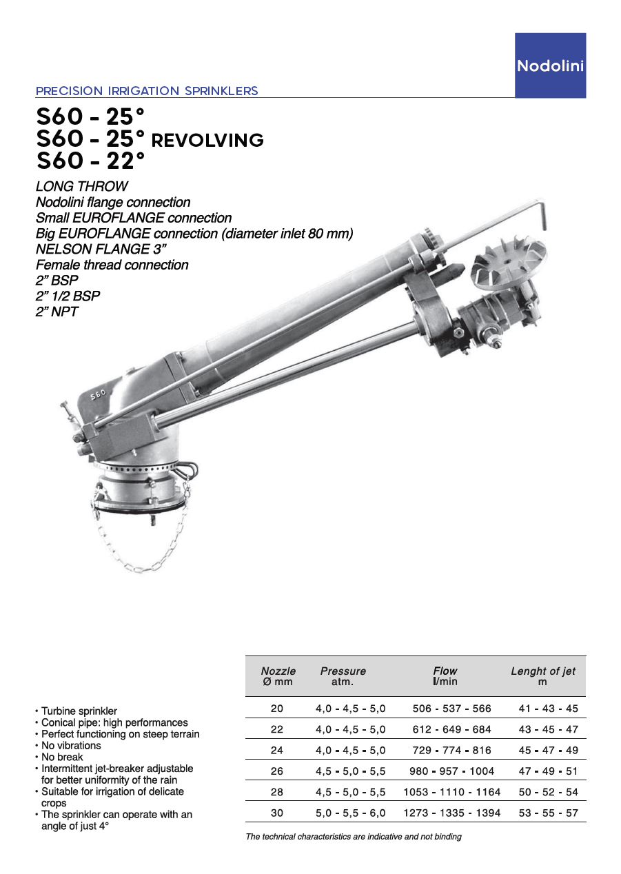 Nodolini professionele hogedruk sproeier type S60 - 25°, sector, 2 1/2" BSP-F bi. dr., 25°, incl. 6 nozzles