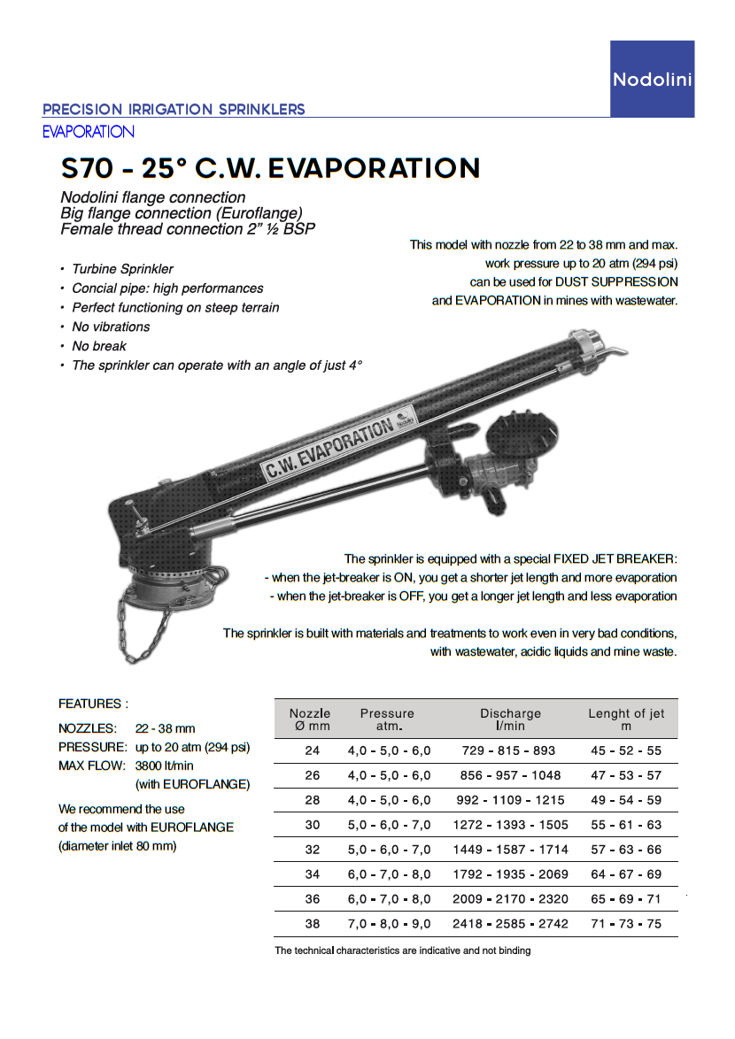 | Type / Serie | Nodolini S70 - 25° C.W. EVAPORATION |