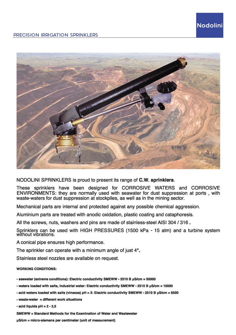 Nodolini professionele hogedruk sproeier voor agressief water type S70 - 25° C.W. EVAPORATION, sector 2 1/2" BSP-F bi. dr., incl. 8 nozzles