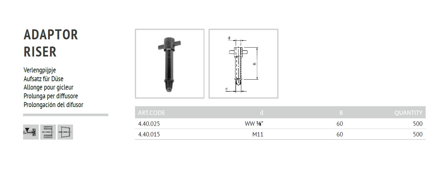 | Soort sproeier | Verlengpijpje voor sproeier 3/8" WW |