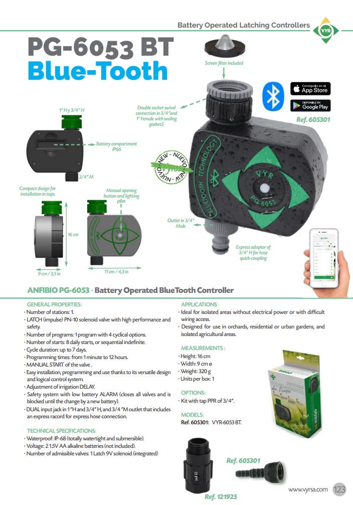 | 02059904 | VYR PG-6050 Blue-Tooth kraan 1 station Controller 3/4" | € 138,72 | 15,00 % | € 117,91 |