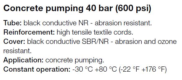 | Toepassing | Beton persslang. 40 bar. |