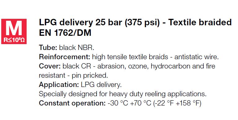 Alfagomma, Brandstofslanghaspelslang voor binnenlands gebruik, Textielinlagen - 16 bar, 51 x 67 mm - 2", afname per volle rol, 60 mtr., type 658AA