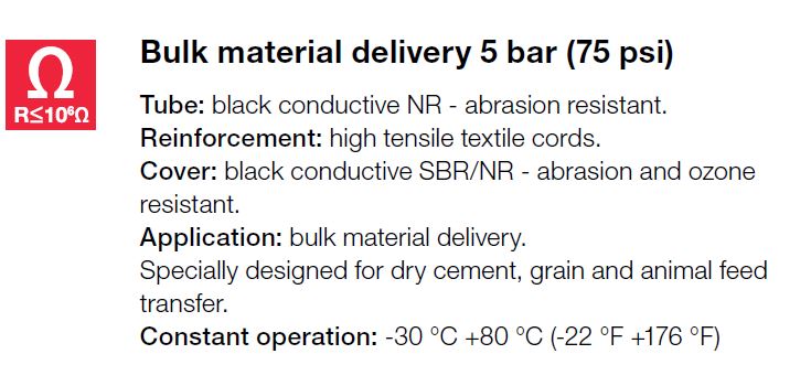 | Toepassing | Bulk materiaal, specifiek ontworpen voor zuig -en perstoepassingen met cement, graan, dierenvoeding |