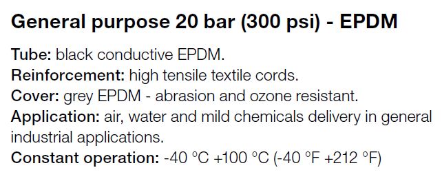 | Buitenwand slang | Grijs, EPDM, slijtvast en ozonbestendig |