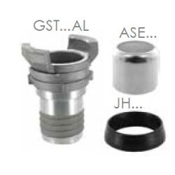 Aluminium Composiet koppeling, Guilemin inpersmof, 38 mm tule x 1 1/2" bu.dr., voor composiet slang met pershuls & afdichting (set), 14 bar