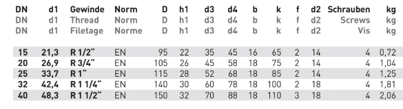 | Uitvoering | PN40 / EN 1092-1 / BSP bi.dr. / 4 b.gaten |