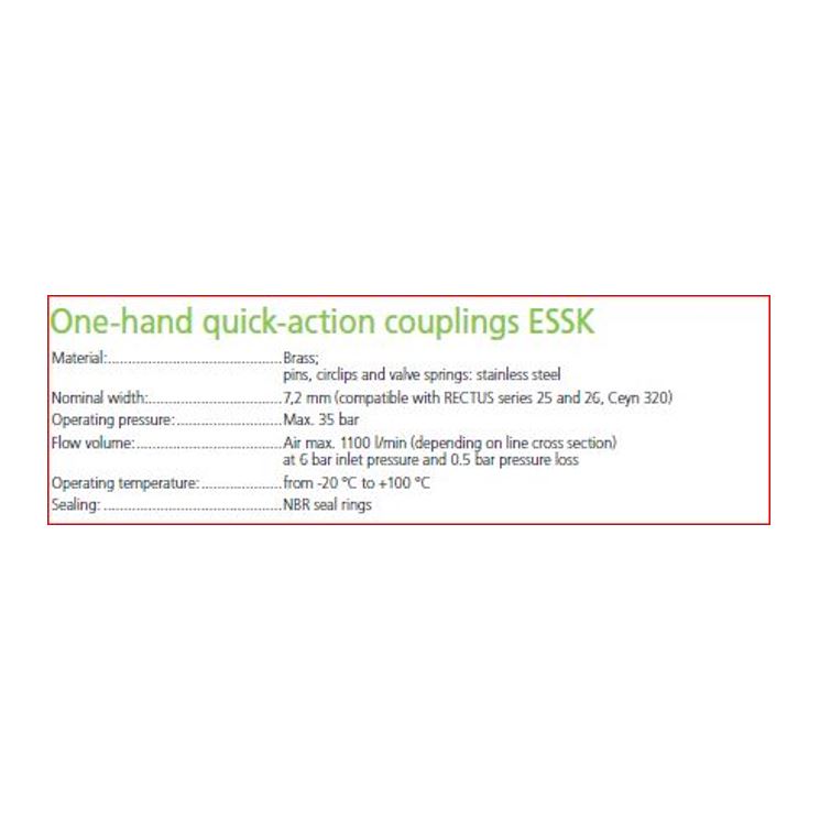 | Uitvoering | ESSK, messing 35 bar snelkoppeling bu.dr. |