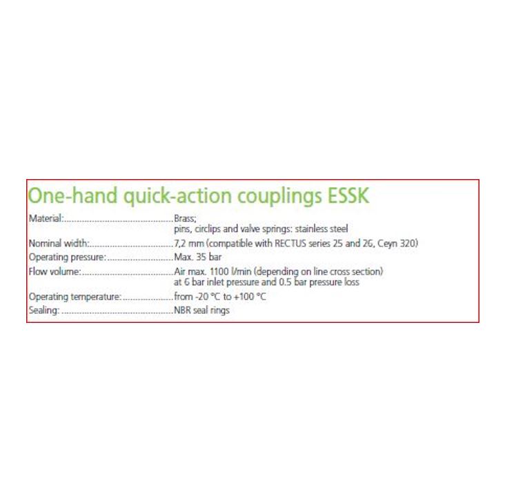 | Uitvoering | ESSK, messing 35 bar insteekkoppeling - slangtule |