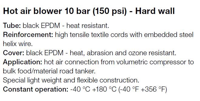Alfagomma, Hete lucht compressorslang, Textielinlagen met ingewerkte stalen spiraal - 10 bar, 76 x 90 mm - 3", afname per volle rol, 61 mtr., type 902AA