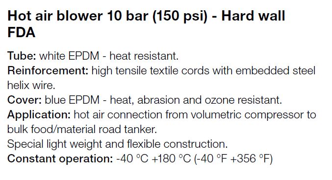 Alfagomma, Hete luchtslang -FDA, Textielinlagen met ingewerkte stalen spiraal - 10 bar, 76 x 90 mm - 3", afname per mtr., type 903LE