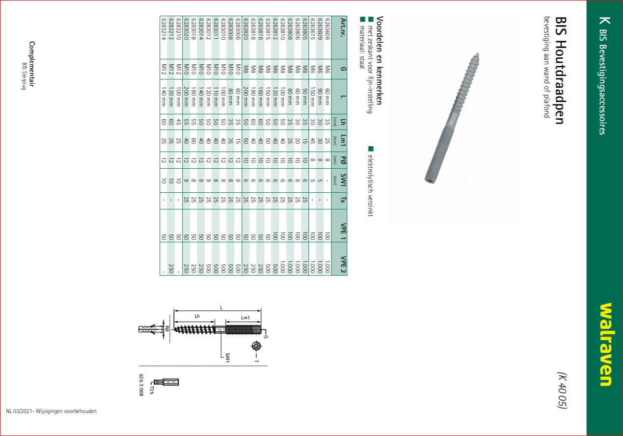 | Uitvoering | Staal verzinkt met zeskant en torx kop |