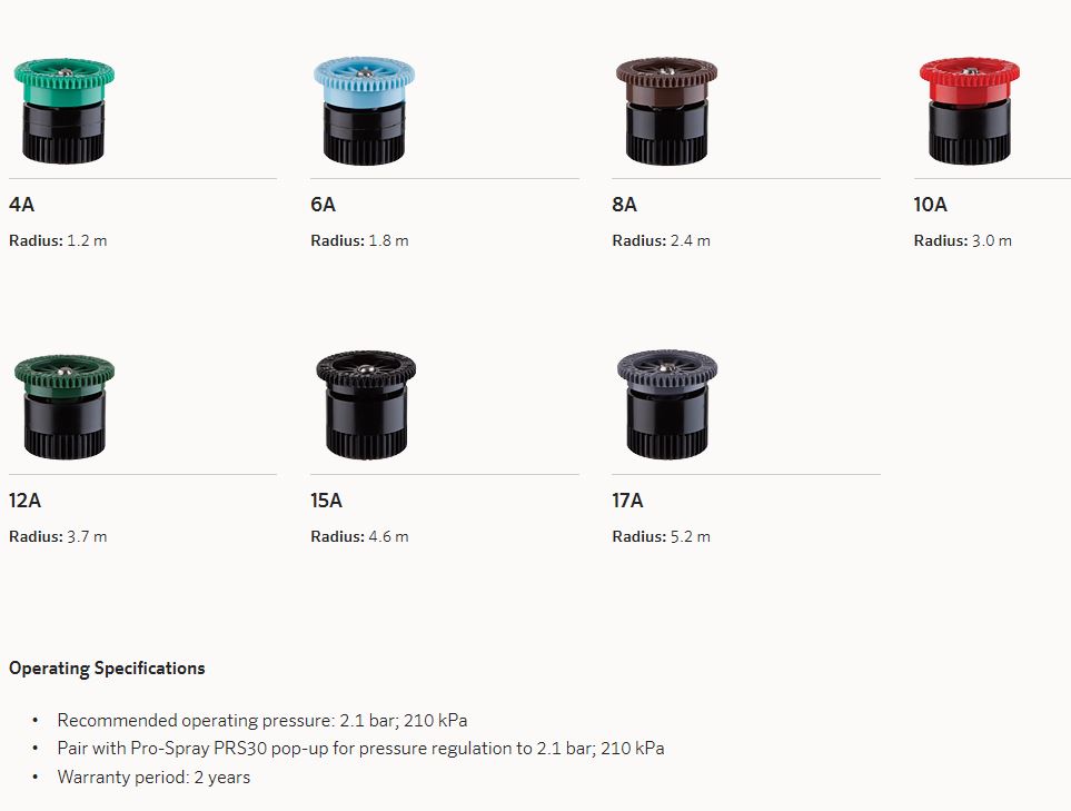 Hunter / RainBird beregening instelbare Pro Spray nozzle 6A, instelbare nozzle voor Hunter / RainBird beregening & Rain Bird pop-up Pro / Spray sproeiers, sproeibereik 0°-360°, radius: 1,8 meter, 1-2,5 bar