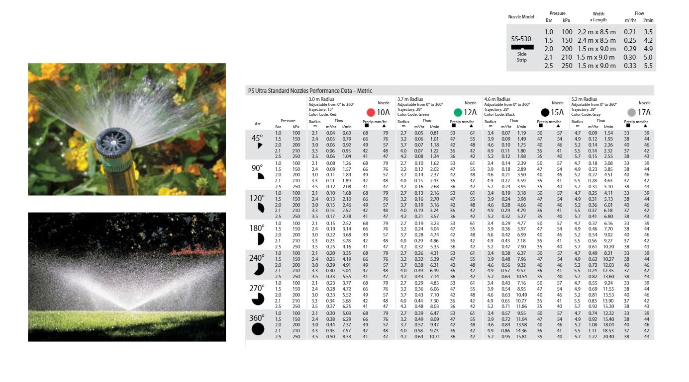 | Uitvoering | Sproeiradius: 1,5 - 9,0 mtr. - PSU-04 - 10 A, side strip / recht |