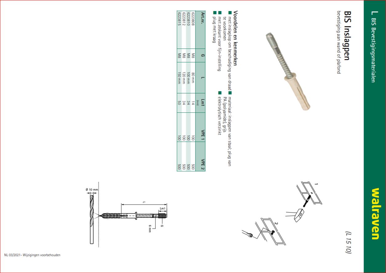 | Uitvoering | Hardstalen inslag pen met Bu.dr. en Polyamide plug |