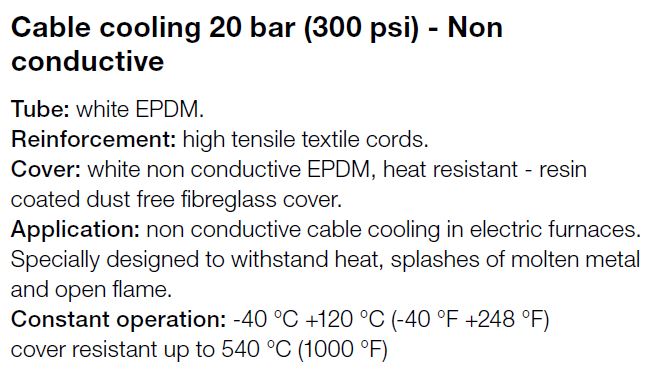 | Buitenwand slang | Wit, EPDM, niet geleidend, met hars gecoate stofvrije glasvezelafdekking |