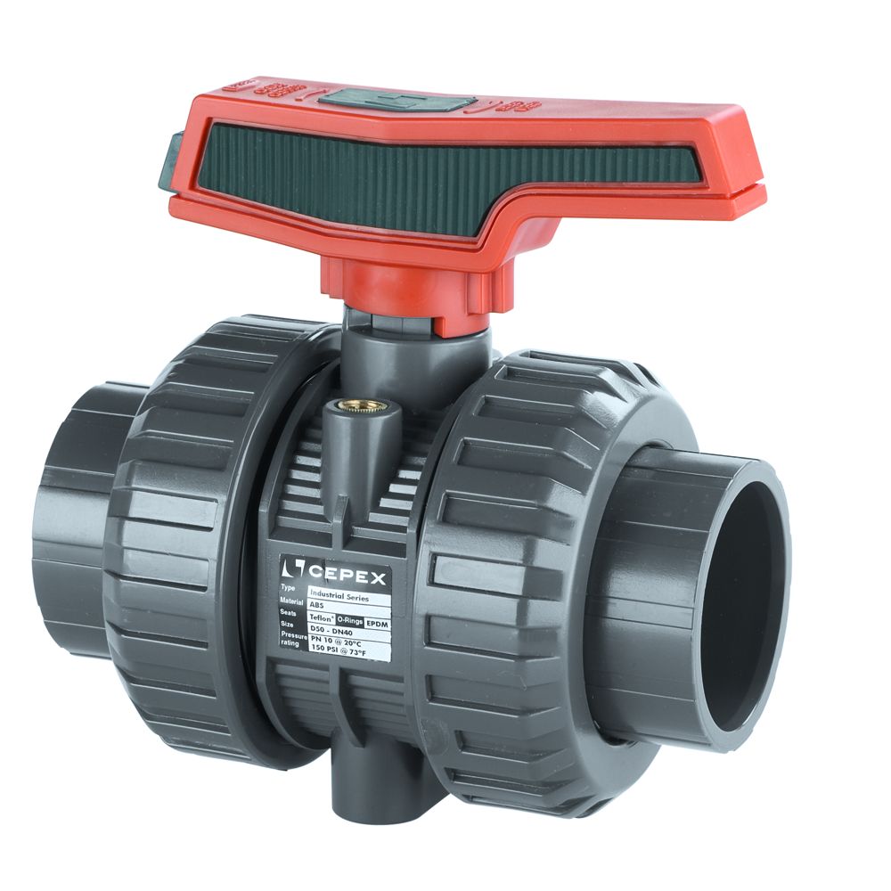 Cepex STD Super Safe PVC-U kogelkraan bi.dr. PN16 met 2 wartels, arretering en borgmogelijkheid, afdichting Teflon-EPDM