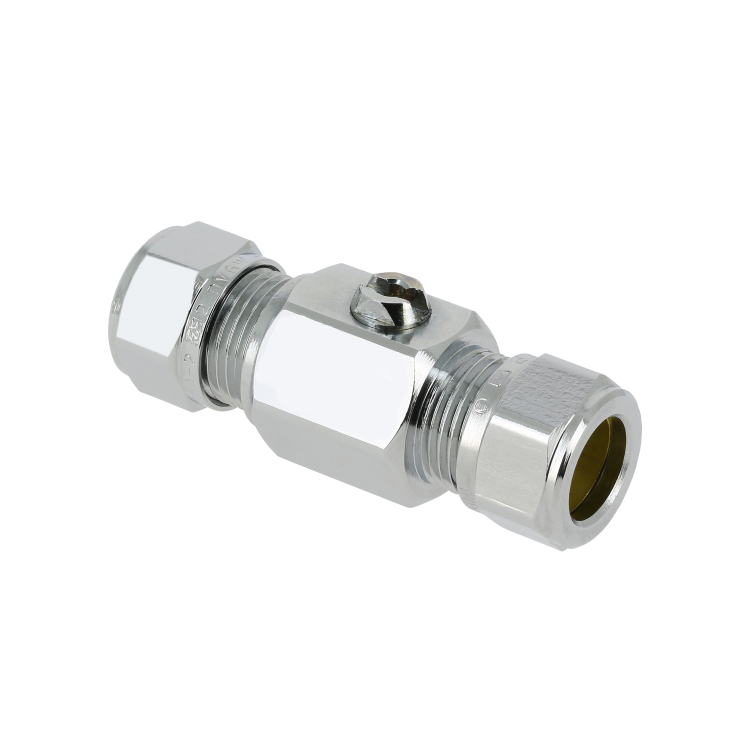 Bonfix wastafel kogelstopkraan, messing verchroomd, 10 x 10 mm, 2 x knel, schroevendraaier bediening, KIWA keur