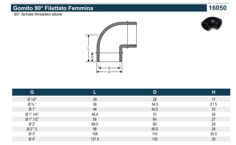 PA PP Knie 16050, 90° 1/2", 2 x BSP bi.dr., PN16