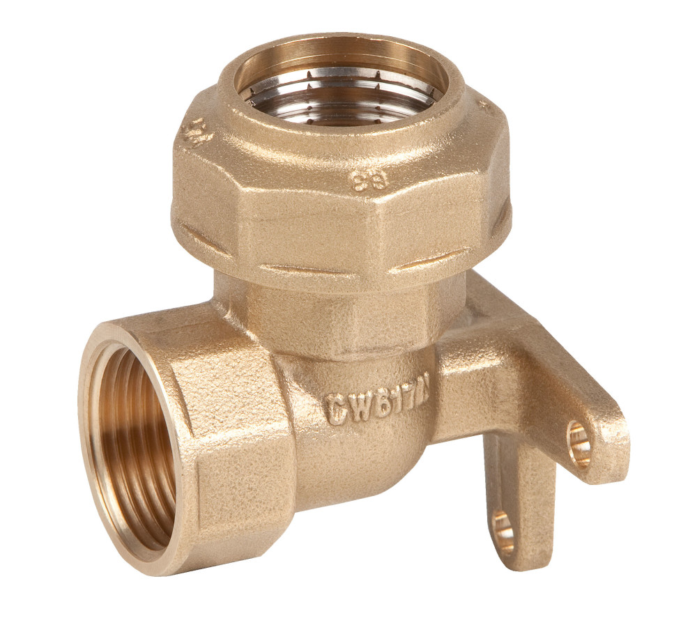 Genebre, messing PE klemkoppeling, Muurplaat 90° 20 mm x 1/2" BSP bi.dr., PN16