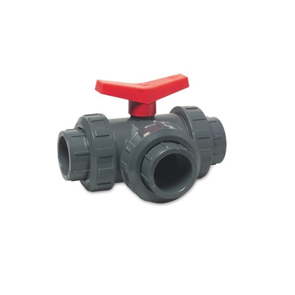 CH PVC-U 3-weg kogelkraan T-boring 63mm, 3 x wartel, EPDM dichting, PN10