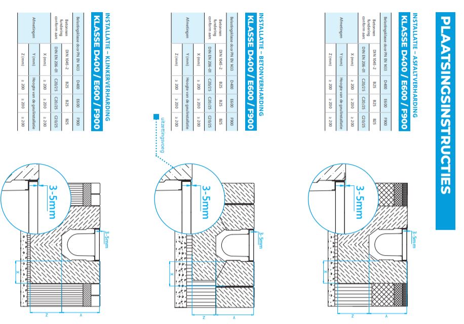 De lijngoot dient in een beton fundatie met voldoende sterkte te worden gelegd.[/br]