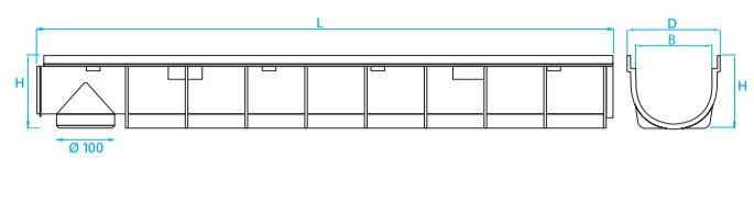 De goten zijn vervaardigd uit polypropyleen onderbak / geul en afgedekt met uitneembaar volbad verzinkt stalen of RVS 304 sleuven rooster (sleuven B = 10 mm), verzinkt stalen geperforeerd rooster (6mm.) of polypropyleen sleuvenrooster (6mm.) of polypropyleen sleufgoot (11 mm).[/br]