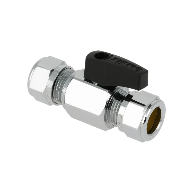 Bonfix kogelstopkraan, messing verchroomd, 12 x 12 mm, 2 x knel, knop bediening, KIWA keur