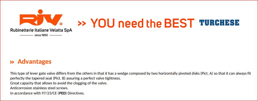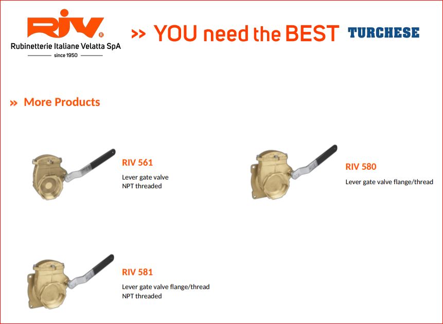 RIV levert een breed assortiment originele kwaliteit schuifafsluiters, hevel bediening armaturen, hydraulische- pneumatische enkel en dubbelwerkende cilinders, tank beveiligingen, tankvulling indicatoren, flexibele koppelingen en trechters.