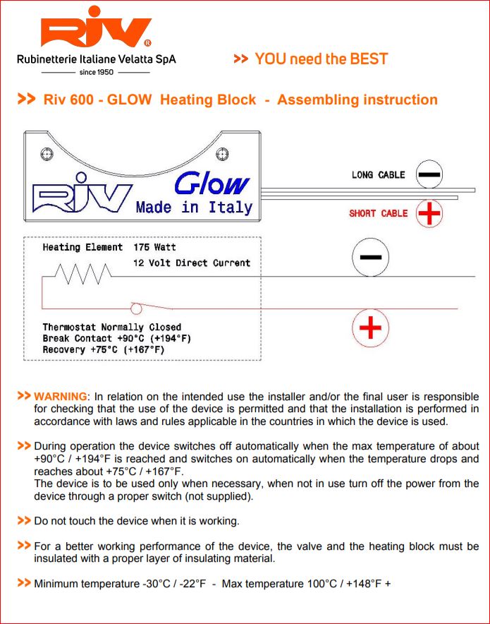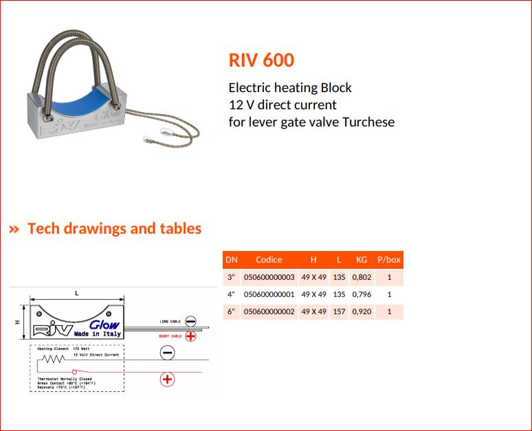 RIV Glow 600 verwarming element 12VDC voor Turchase afsluiter, 3"