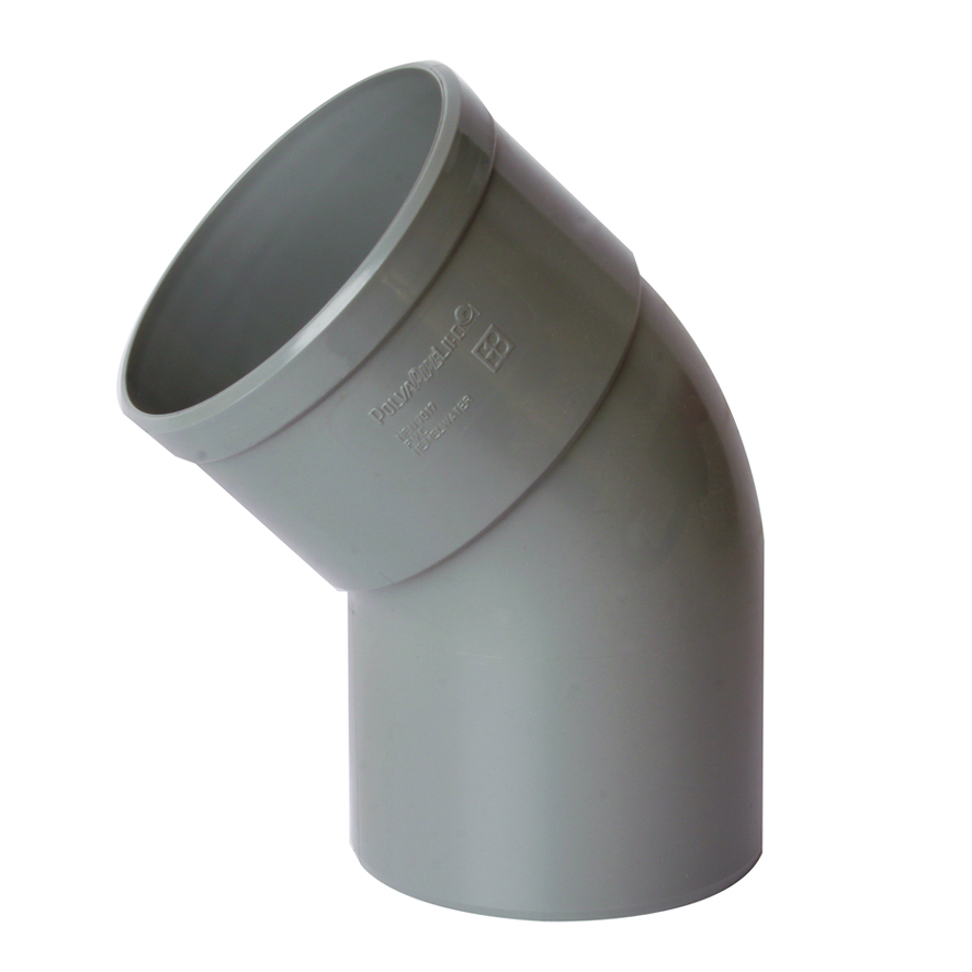 Regenwater PVC-U lijmbocht 100 mm 45° M/S grijs, RAL (7037)